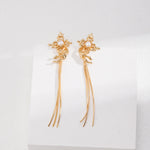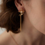 A luminous pearl stud anchors the design, framed by a golden silhouette and finished with a slender, dangling strand that adds just the right touch of movement. Equal parts reverent and elevated, these earrings are ready for wherever your day (or your faith) takes you.