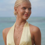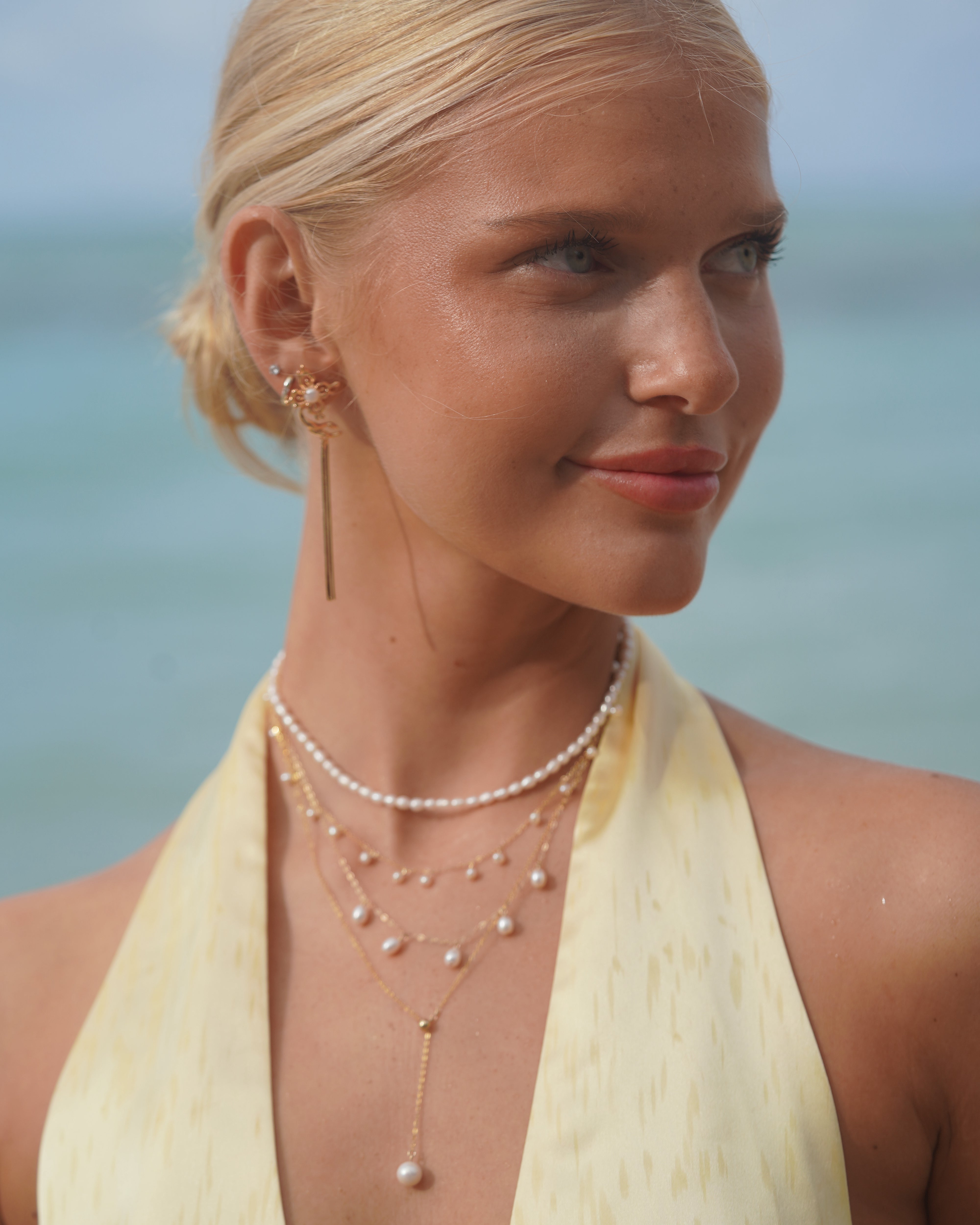 The Ascend Pearl Earrings echo the same radiant energy as the necklace—where cross-like lines and butterfly forms blur into something soft and striking.