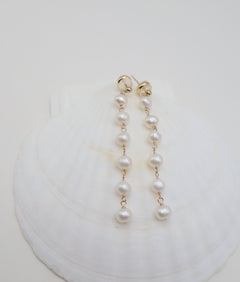 Let your style flow with the effortless elegance of the Cascade Drop Earrings. These beauties feature six lustrous freshwater pearls that gracefully descend from a 14k gold-filled strand, creating the perfect balance of sophistication and playfulness.