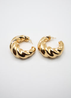 Make a bold fashion statement with the Croissant Twist Hoops - a timeless piece that adds glamour and style to any outfit.
