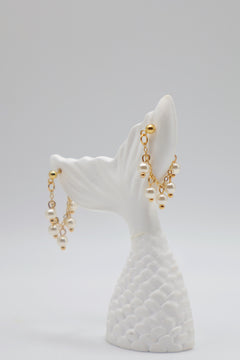 Meet the Nalu Hoops—named after the Hawaiian word for "wave," these earrings flow with effortless beauty and quiet movement. 14k gold filled chain loops gently around the ear, while tiny freshwater pearls sway like sea foam with every step you take.