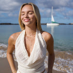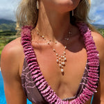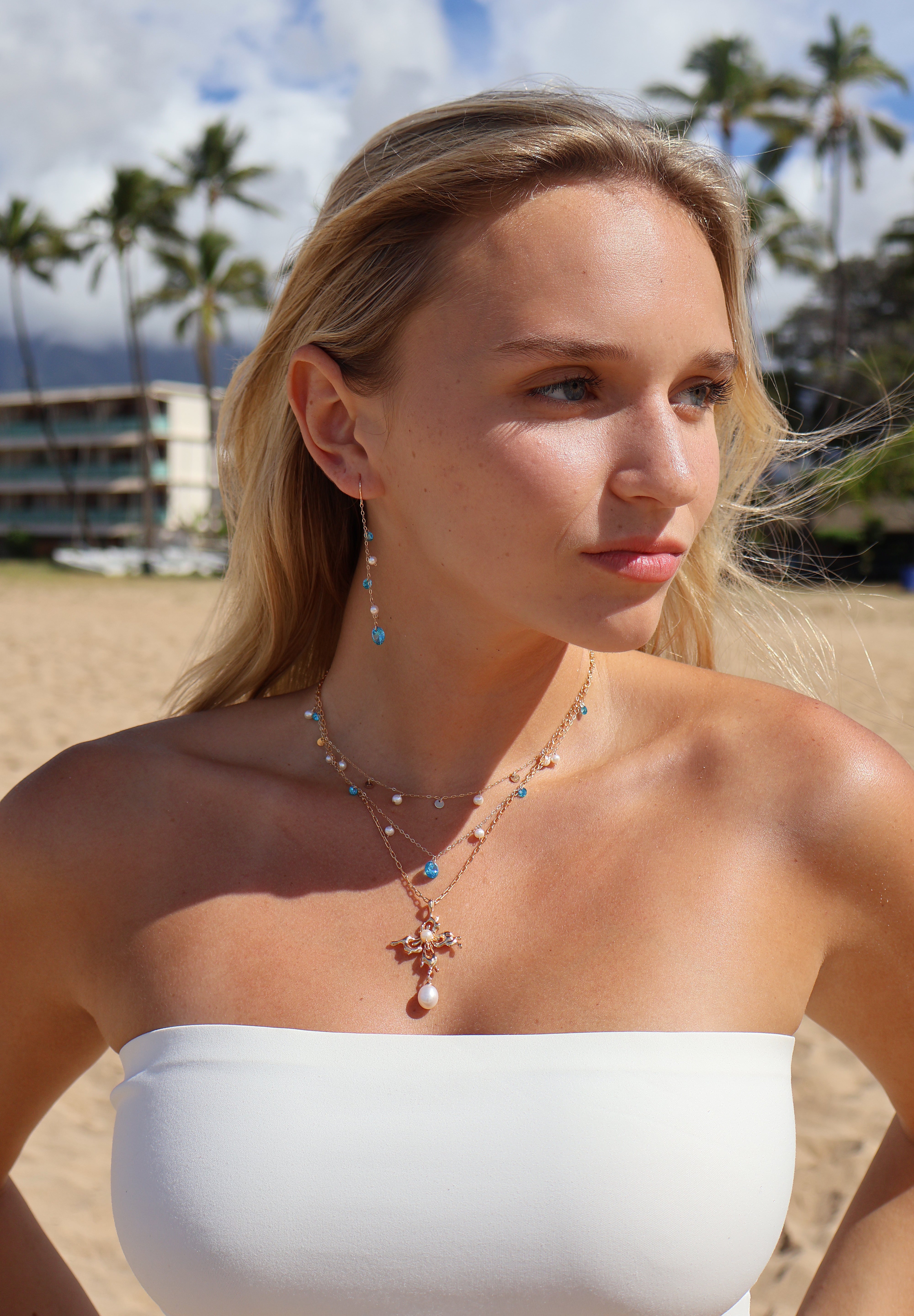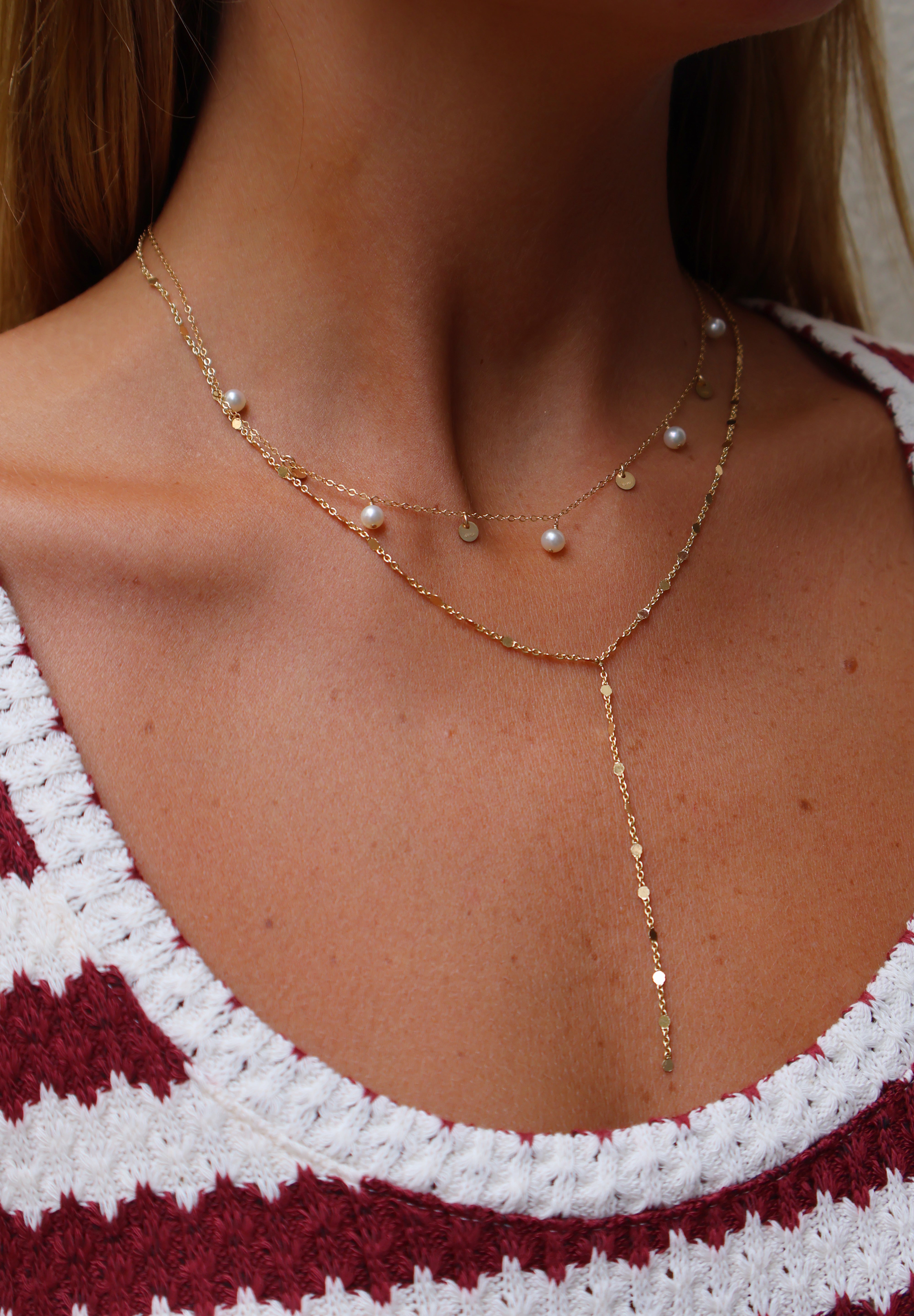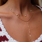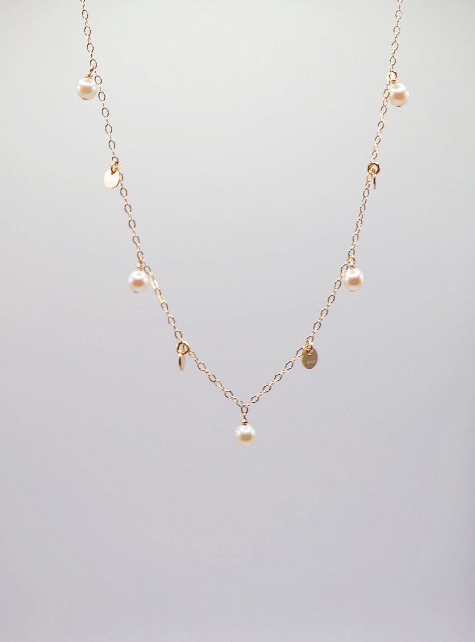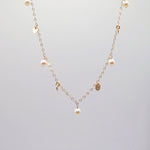 The Golden Reverie Necklace is a delicate masterpiece that brings subtle elegance to your everyday look. Featuring smaller freshwater pearls spaced across a 14k gold-filled chain, each pearl is framed by dainty golden circlets for a touch of refined charm.