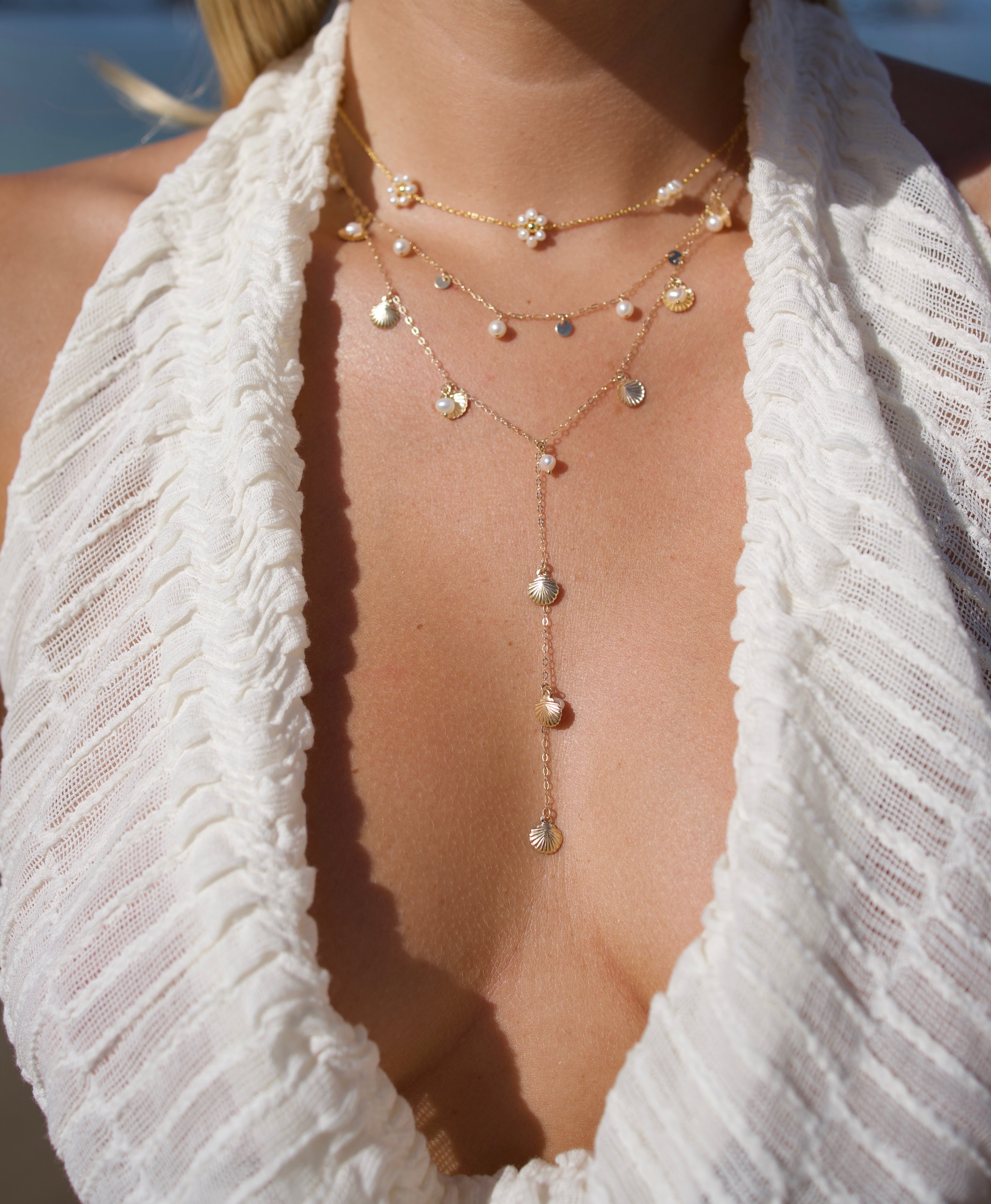• Gold-filled chain & shell charms – tarnish-resistant & swim-safe