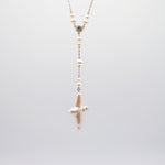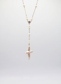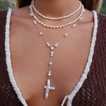 The Divine Tide Necklace is a delicate balance of elegance and symbolism. A single cubic zirconia detail glimmers along the gold chain, anchoring a graceful Y-drop that ends in a freshwater pearl cross pendant. Crafted from 18k gold filled metal, it's a quietly powerful piece—coastal, radiant, and rich with meaning.