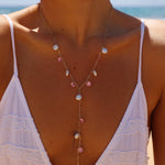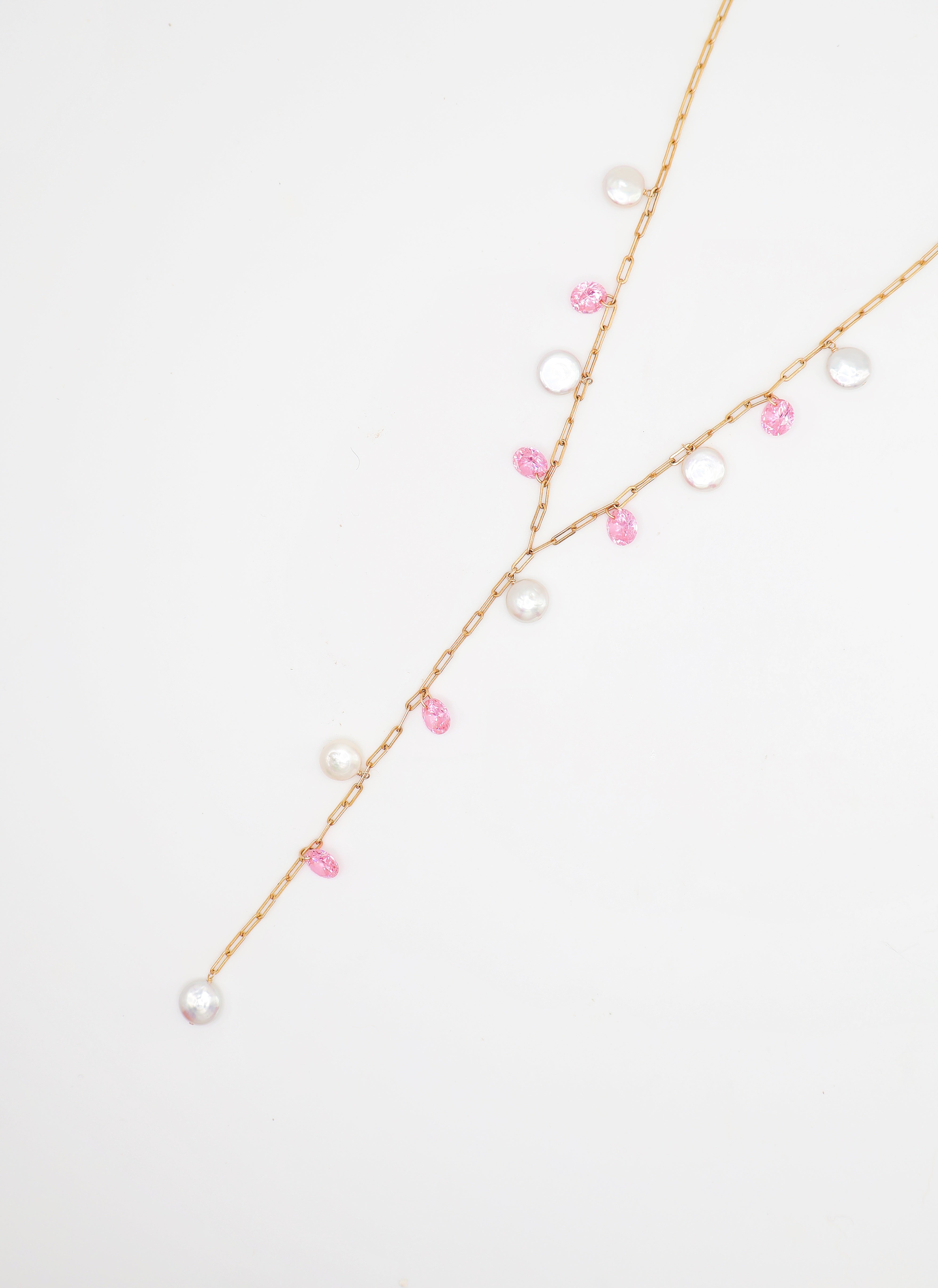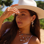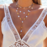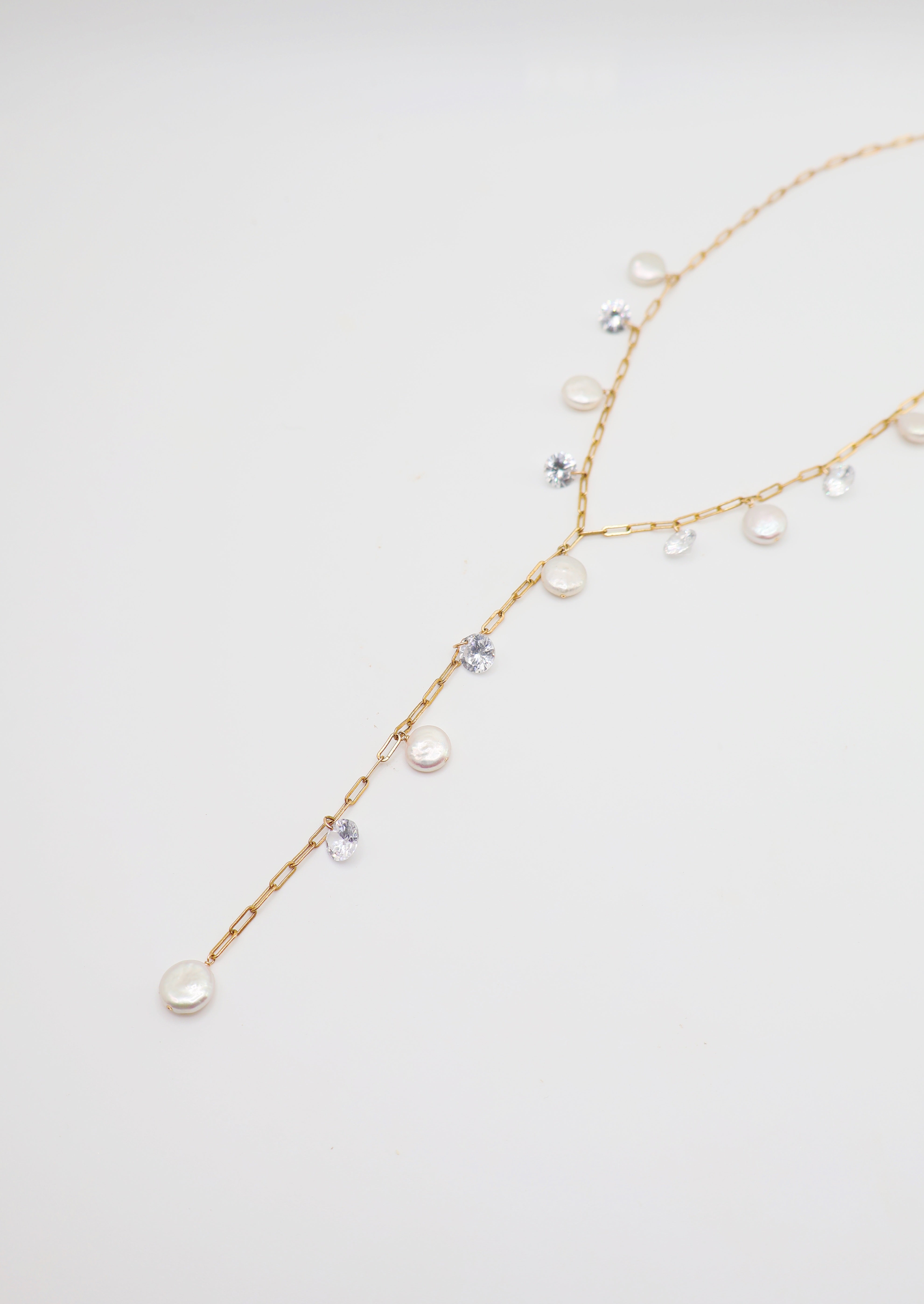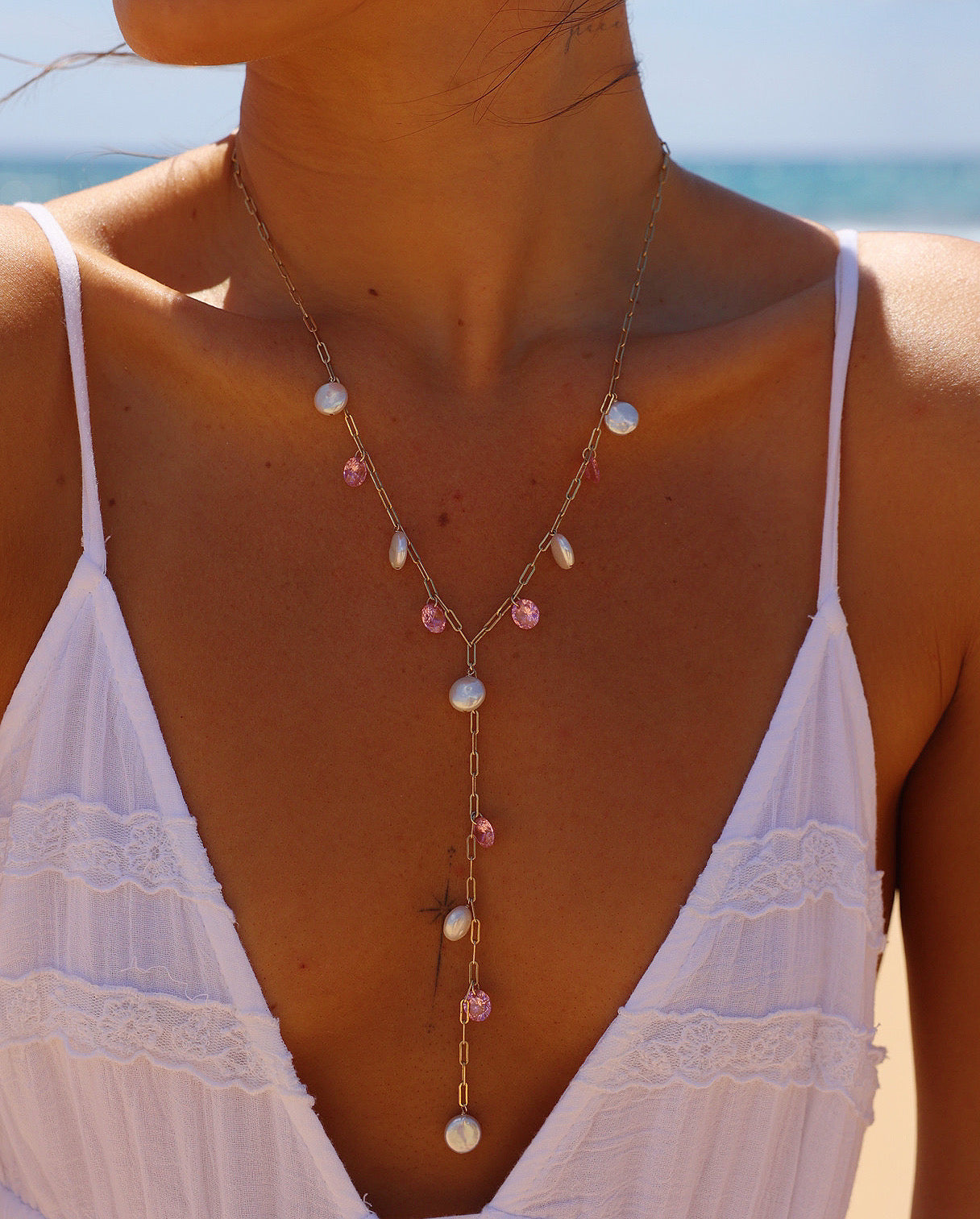 The Kealani Y-Necklace captures that effortless island light—calm, clear, and quietly captivating. Featuring a delicate 14k gold filled chain, this 25-inch beauty is anchored by a 4.5" drop adorned with mother-of-pearl and cubic zirconia. Think soft luster, subtle sparkle, and a flattering Y-shape that catches the eye with every move.