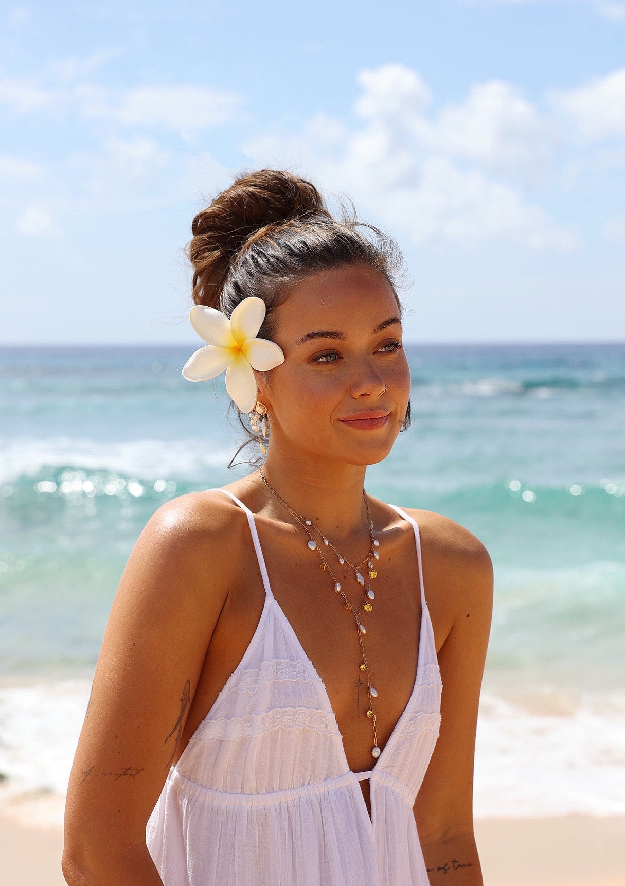 Layer it over sun-kissed skin or style it with plunging necklines—either way, it's your new go-to for easy elegance with a little Hawaiian soul.
