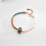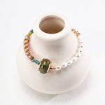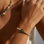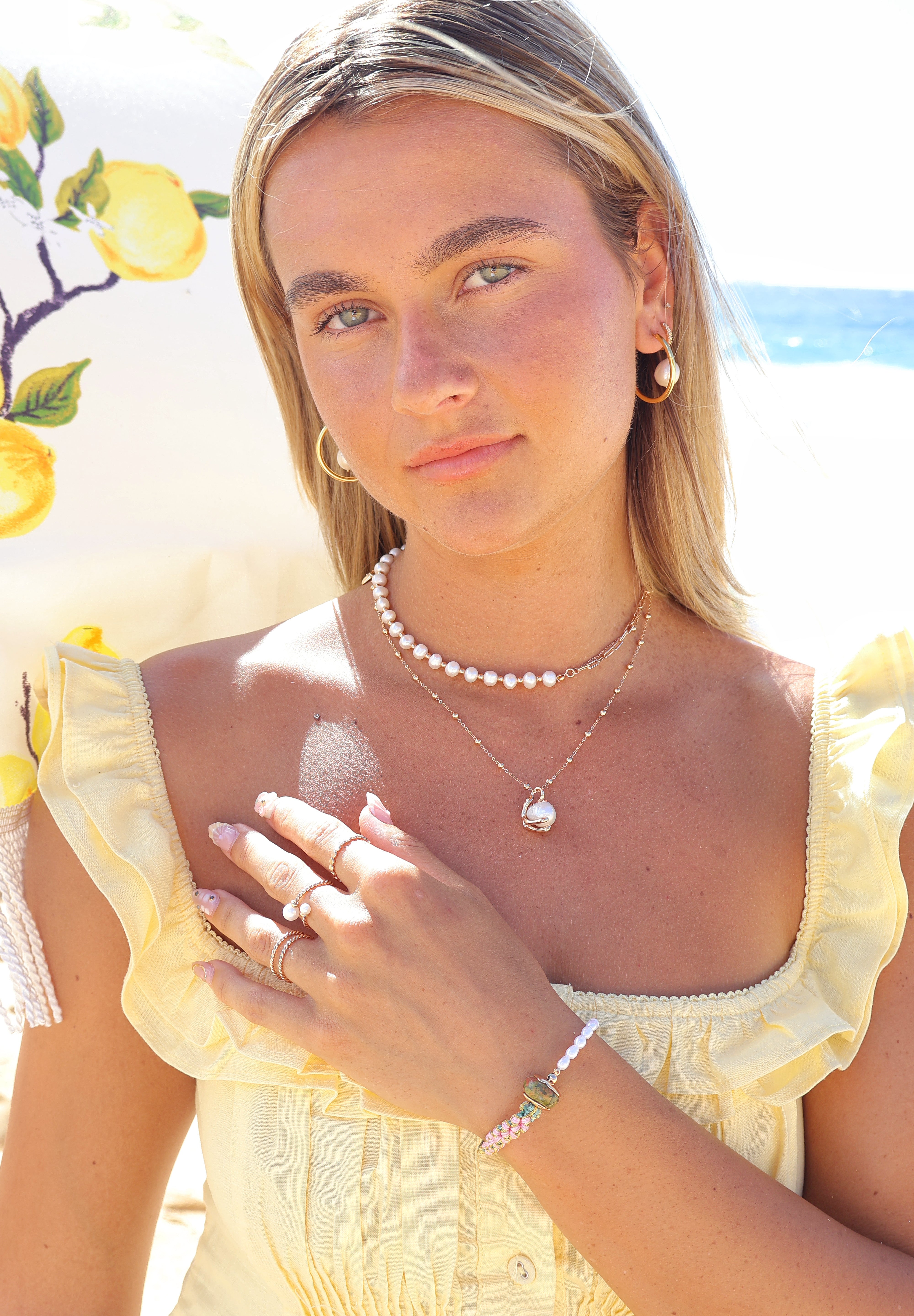 Half woven texture, half freshwater pearls — the Strand & Stone Bracelet is all about contrast in the most elegant way. At the center: a bold, earthy unakite stone to anchor your look in strength and calm.