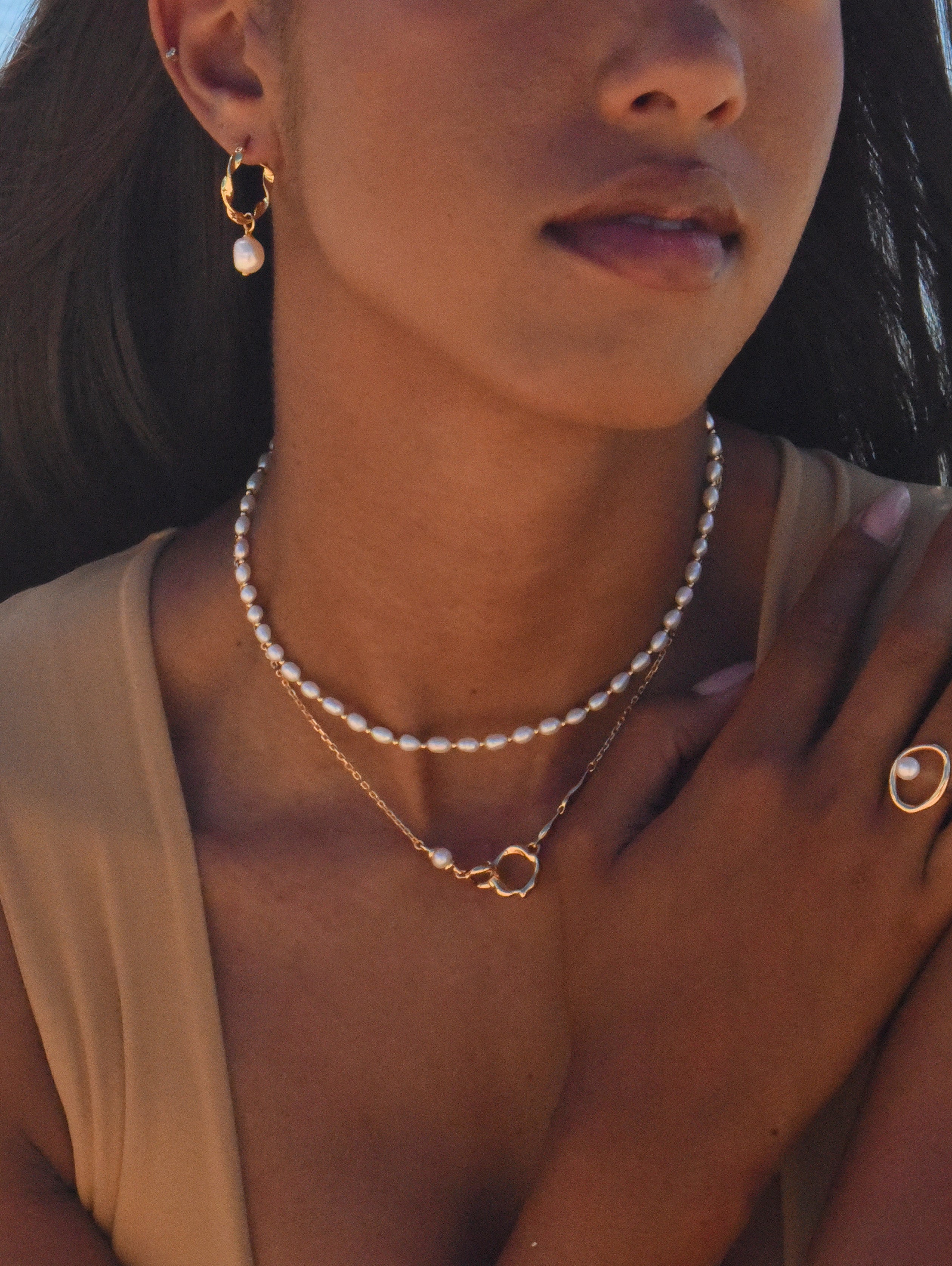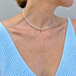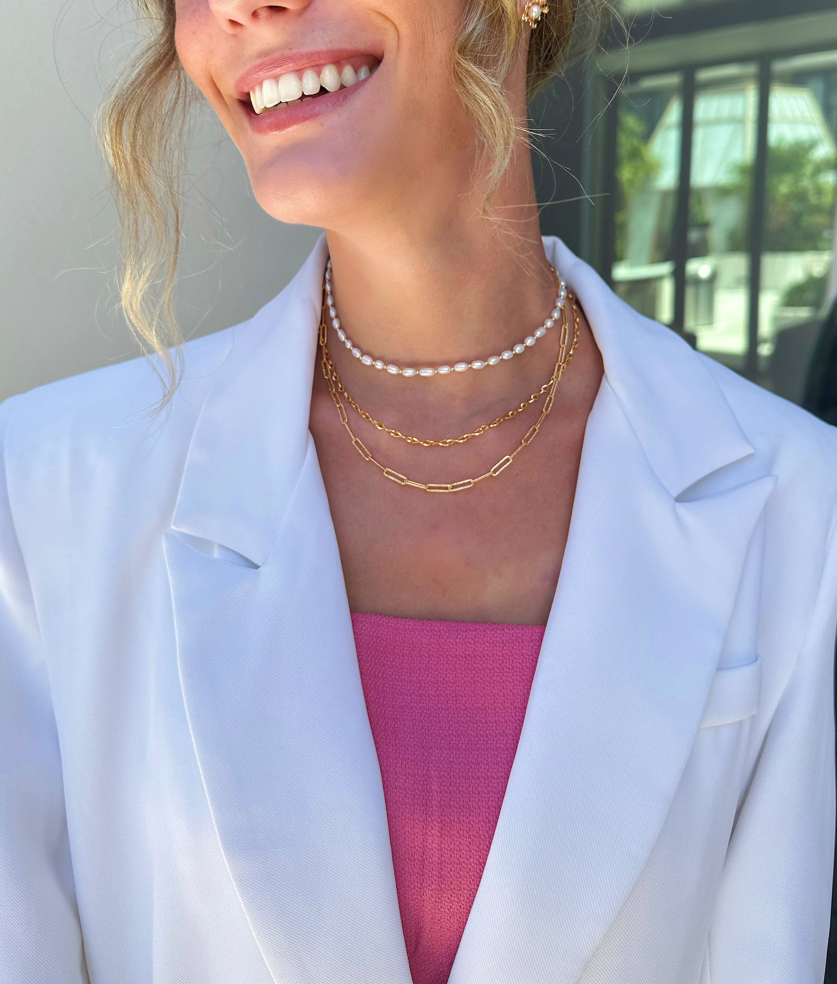 Looking for a necklace that's both simple and chic? Our pearl chain necklace is the perfect accessory for you! With lustrous pearls strung along a delicate chain, this necklace is the definition of understated elegance. Whether you're dressing up for a night out or adding a touch of class to your everyday look, this pearl chain necklace is the perfect choice for the fashion-forward, fun-loving gal!