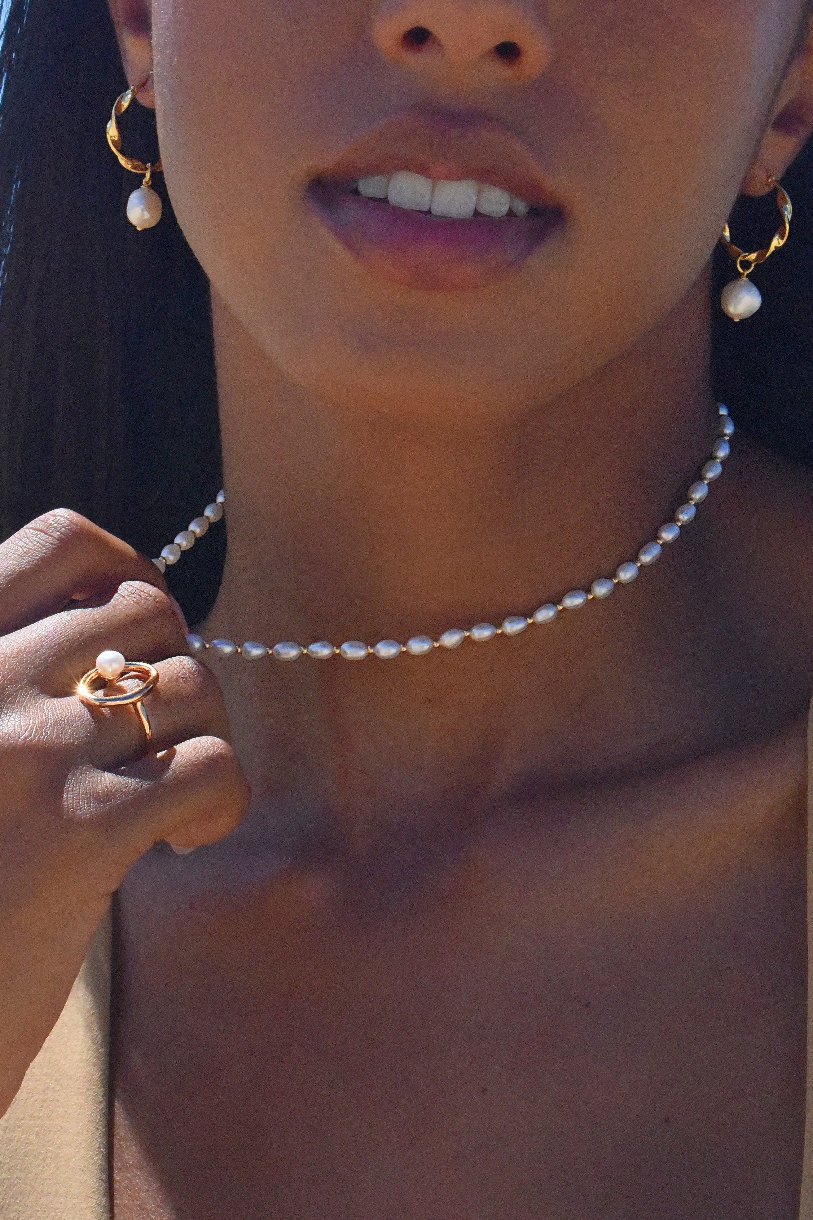 Materials 18k gold on sterling silver, cultured freshwater pearls