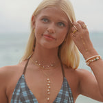 Pair it with your favorite open neckline or stack it with shorter chains for a little cosmic drama.