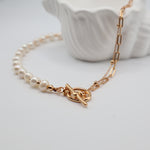 Hybrid Chain with Freshwater Pearls and Gold Links