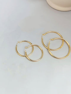 A modern twist on a classic design, the thin gold hoops exude an air of opulence, effortlessly enhancing any outfit for any occasion. Whether you're treating yourself to a touch of luxury or searching for that meaningful gift for a loved one, our Dainty Gold Hoops will surely impress with their timeless allure and refined grace.